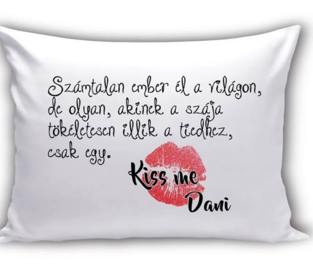 Ezzel a gyönyörű és személyes üzenettel ellátott párnával garantáltan meglepheted a kedvesedet! A neveddel és a csók lenyomatával ellátott, puha tapintású párna nemcsak a lakás dísze, hanem egy örök emlékeztető a köztetek lévő egyedi kapcsolatra. Egyedi és szívmelengető ajándék évfordulóra vagy születésnapra!